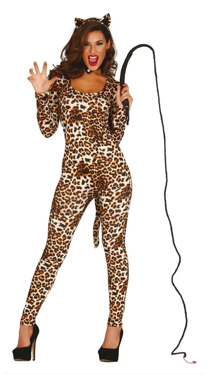 Bruin Bijtgraag Luipaard Jumpsuit Vrouw Kostuum