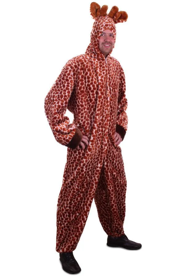 De lange nek wordt een beetje moeilijk maar verder heeft deze Gerard Giraff Overall Pluche kleding alle typische kenmerken van een Giraf. De bruine vlekken zitten over het hele kostuum verspreid en boven op de capuchon van het pak zitten de kleine bewegelijke oortjes en de twee hoorntjes. Met deze outfit ga je op het Safari Dieren feest steek je flink boven de leeuwen en de luipaarden uit. Is het niet letterlijk dan toch zeker figuurlijk!