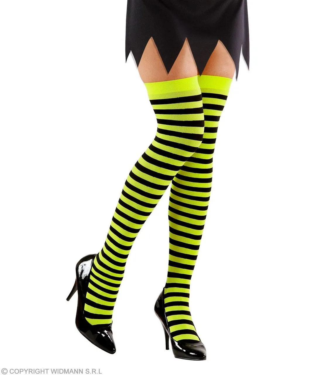 Kniekousen Extra Lang Gestreept, Neon Geel
