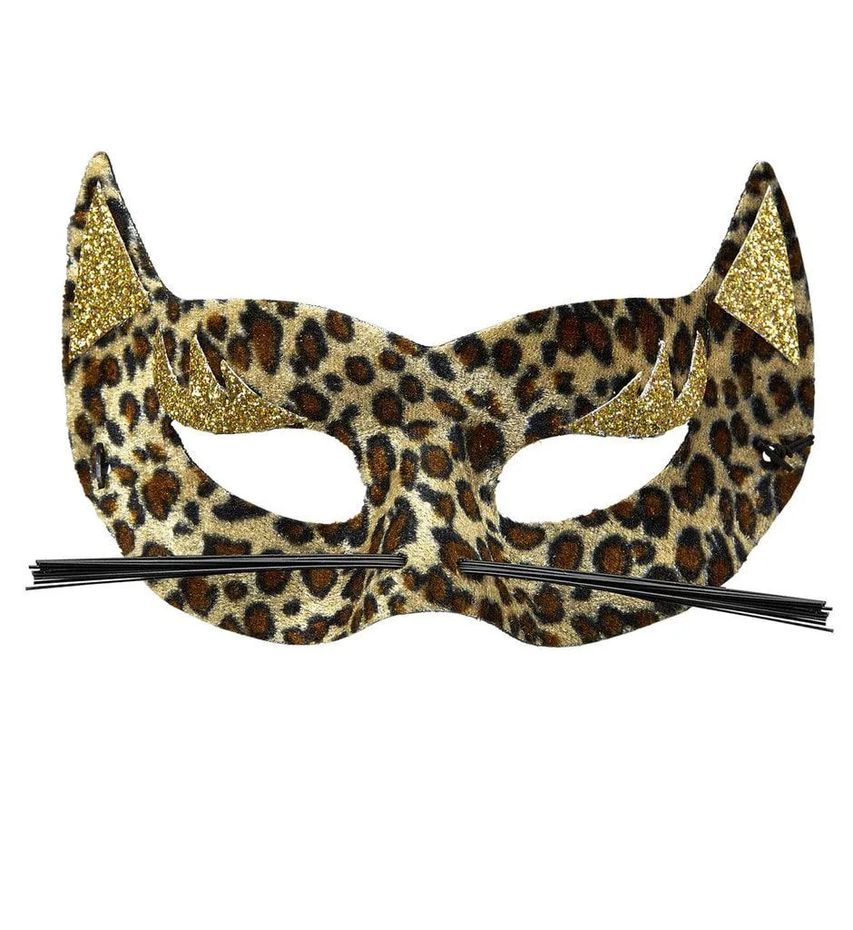 Sexy Oogmasker Fluweel Luipaard Met Gouden Glitters