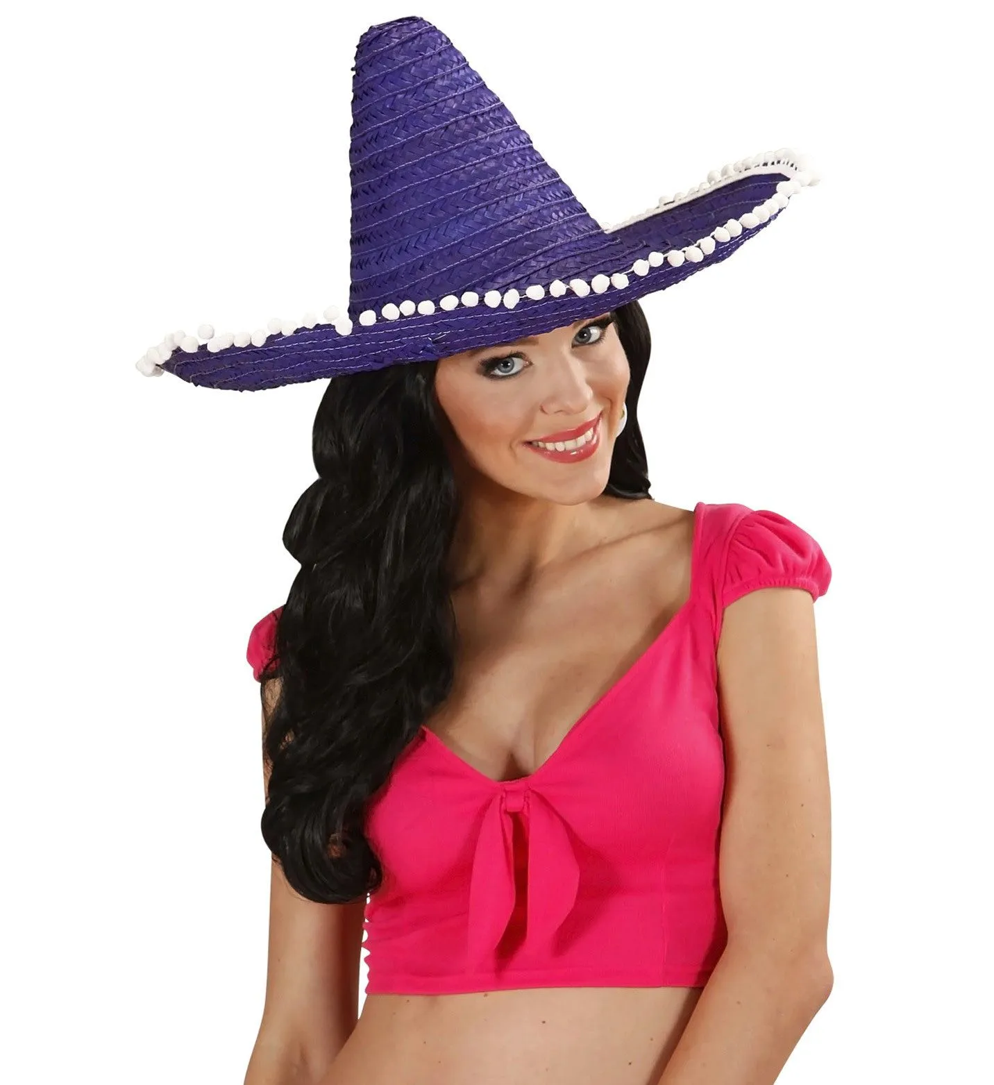 Sombrero 50cm, Blauw / Paars Met Pom Poms