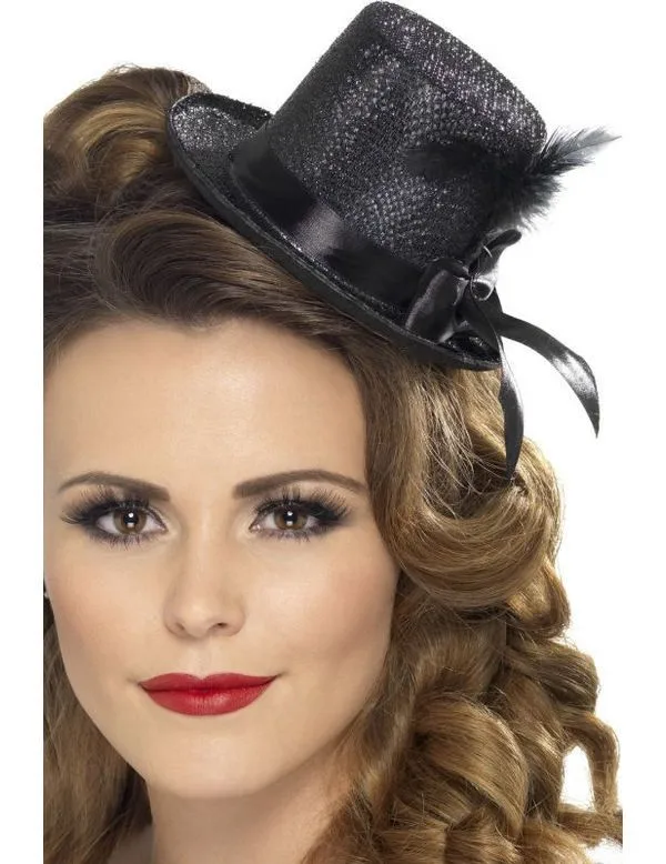 Zwarte Mini Hoed Met Veer
